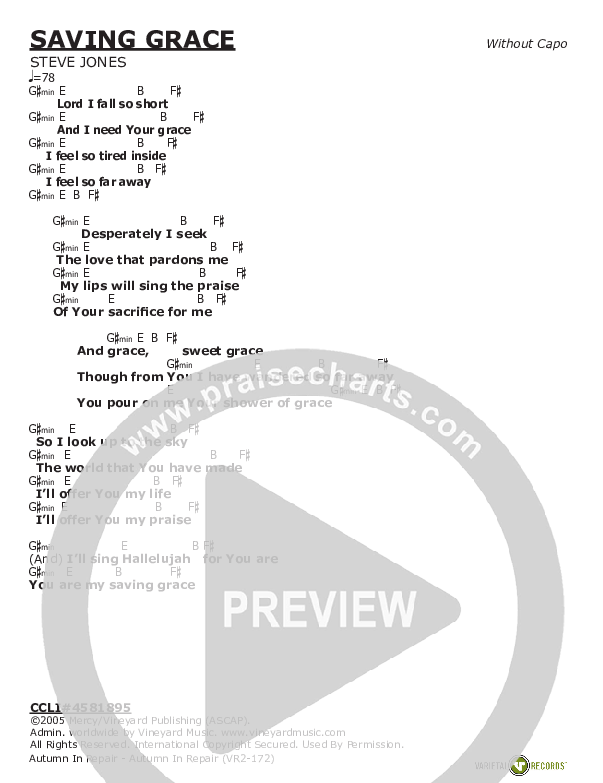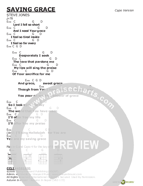 Saving Grace Chords PDF (Vineyard Music)