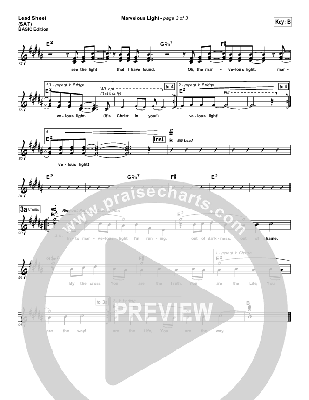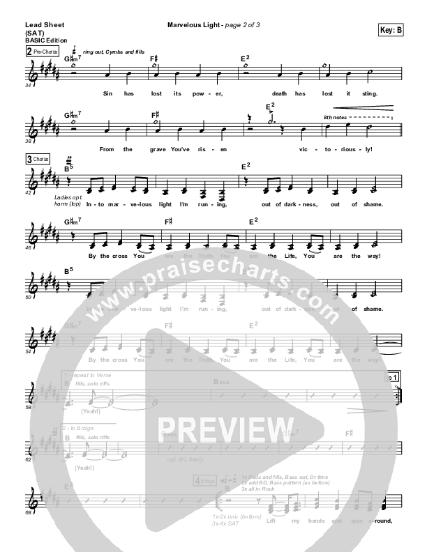 Download the Orchestration for Marvelous Light by Charlie Hall, from the album Best Of Passion (So Far). This song was arranged by John Wasson in the key of A, B.