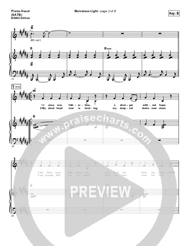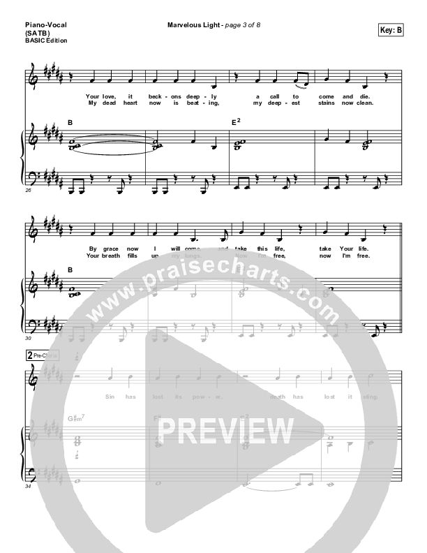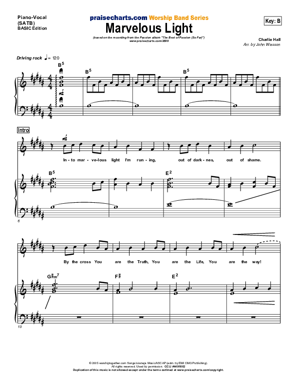 Download the sheet music for Marvelous Light by Charlie Hall, from the album Best Of Passion (So Far). This song was arranged by John Wasson in the key of A, B.