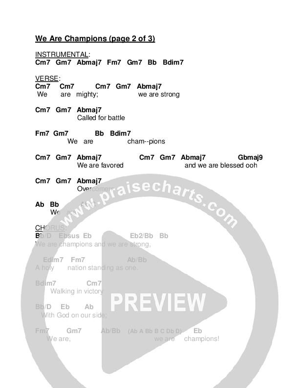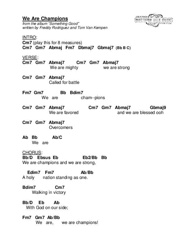 Download the PDF Chord Charts for We Are Champions by Jermaine Rodriguez, from the album Bless The Lord.