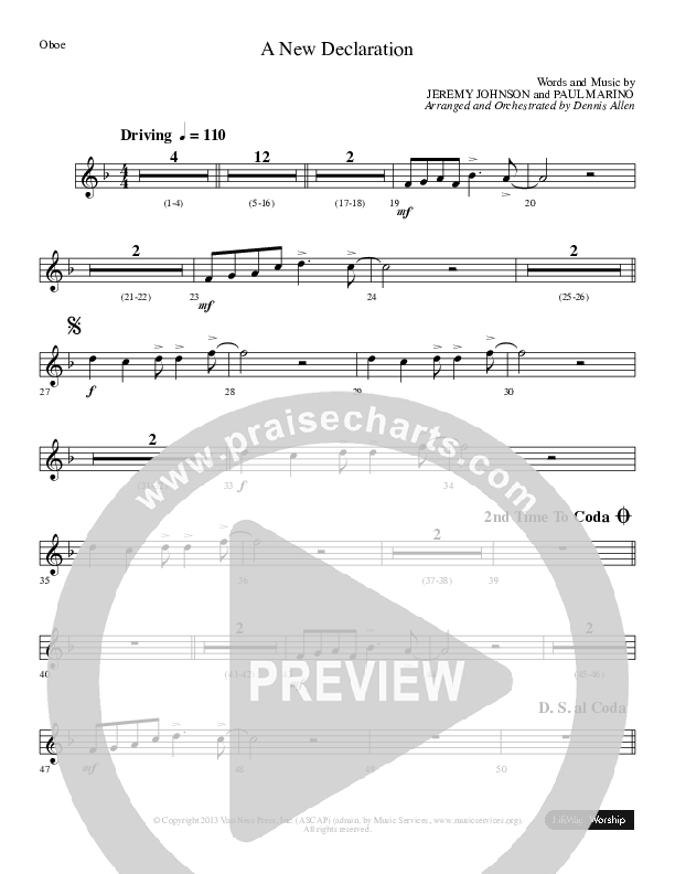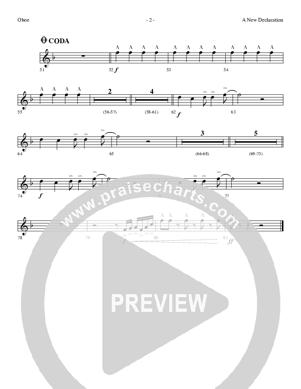 Download the Oboe sheet music for A New Declaration by Dennis And Nan Allen, from the album Celebrate American. This song was arranged by Lifeway Worship in the key of F.