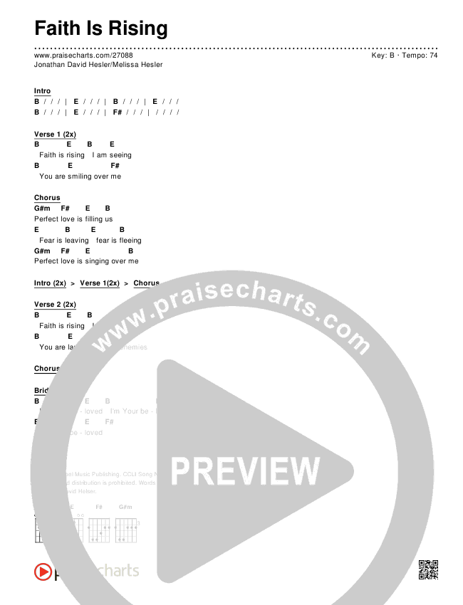 Faith Is Rising Chords PDF (Jonathan David Helser / Melissa Helser)