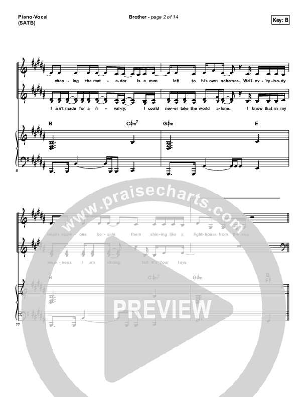 Download the sheet music for Brother by Needtobreathe, from the album Rivers In The Wasteland. This song was arranged by Daniel Galbraith in the key of B, Bb.