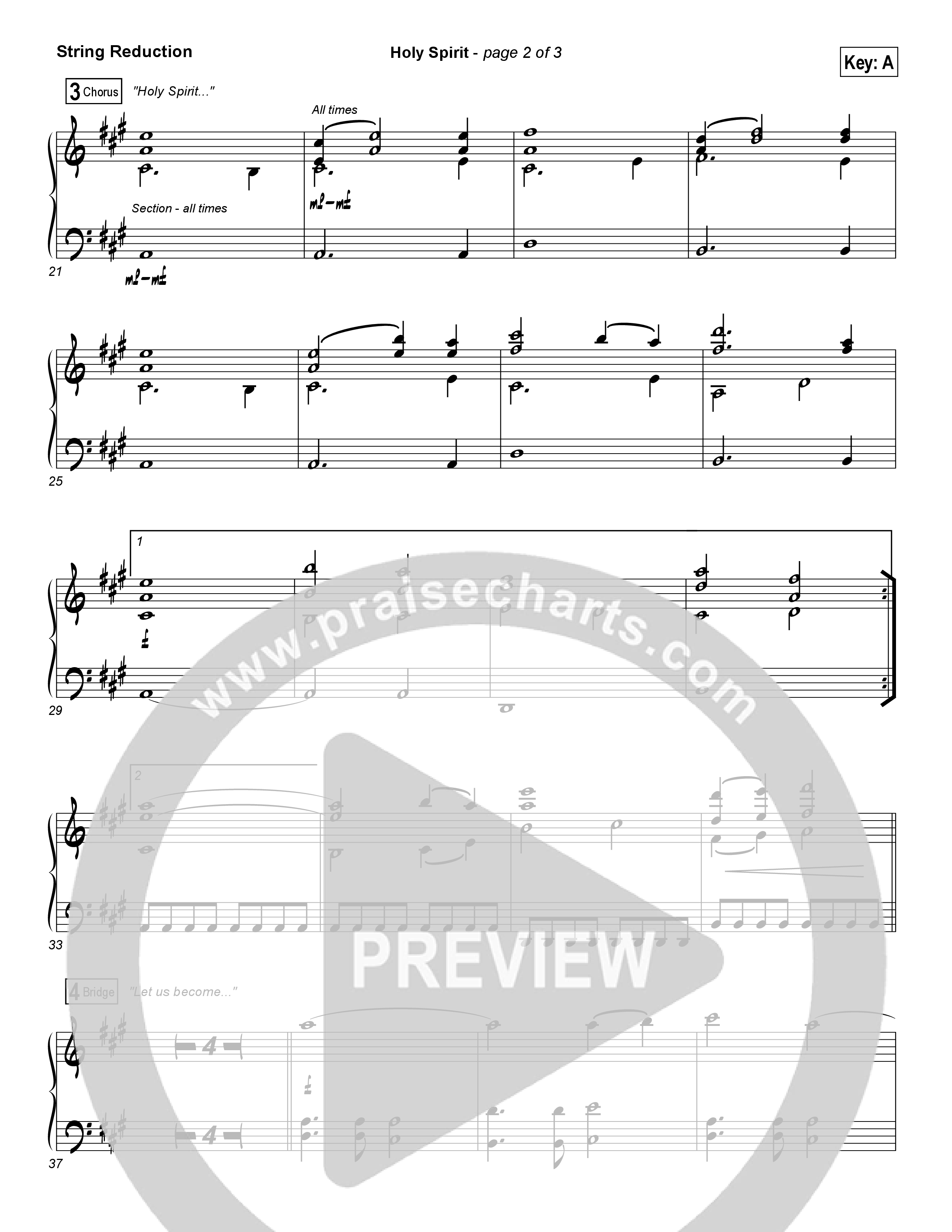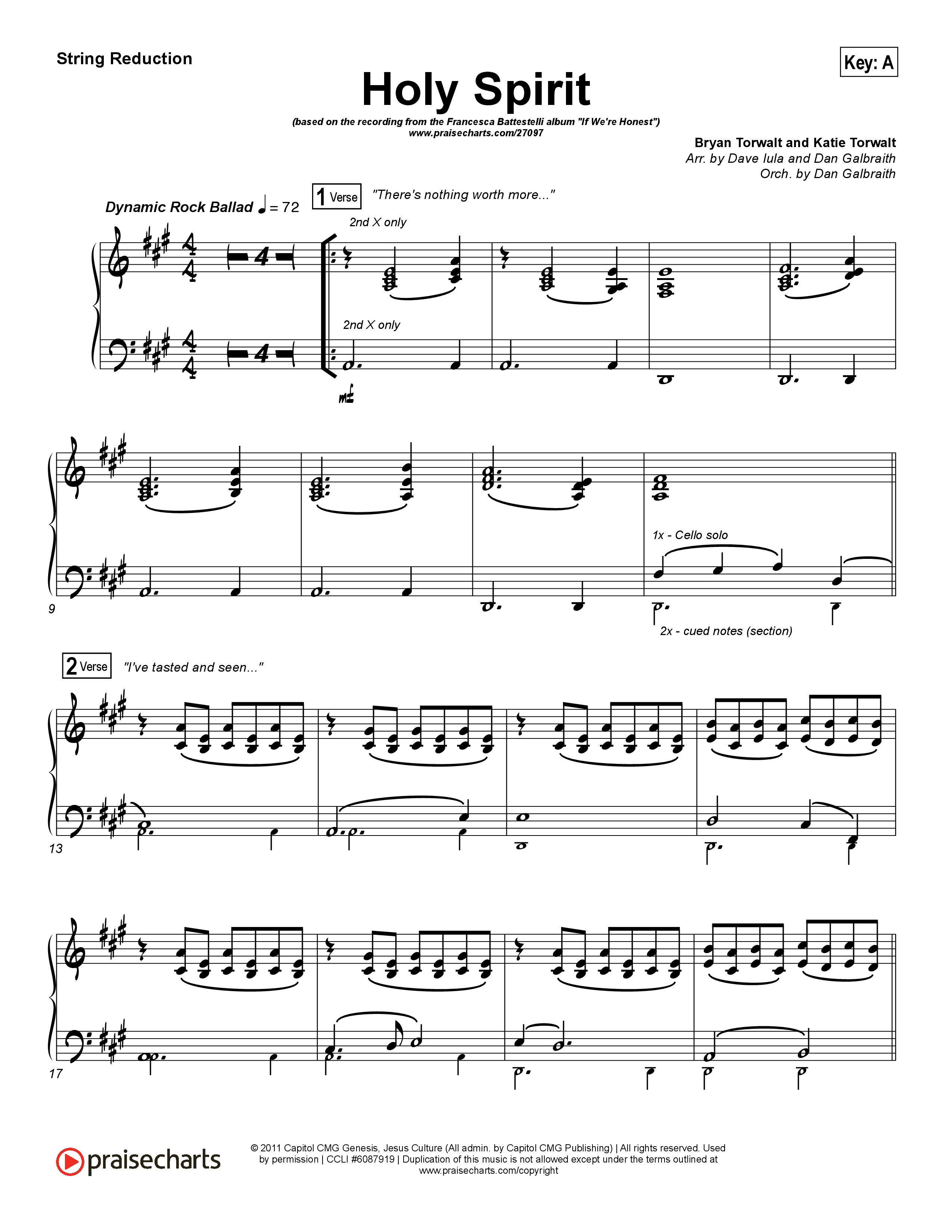 Download the String Reduction sheet music for Holy Spirit by Francesca Battistelli, from the album If We're Honest. This song was arranged by Dave Iula / Daniel Galbraith in the key of A, B, D, E, Eb, F, G.