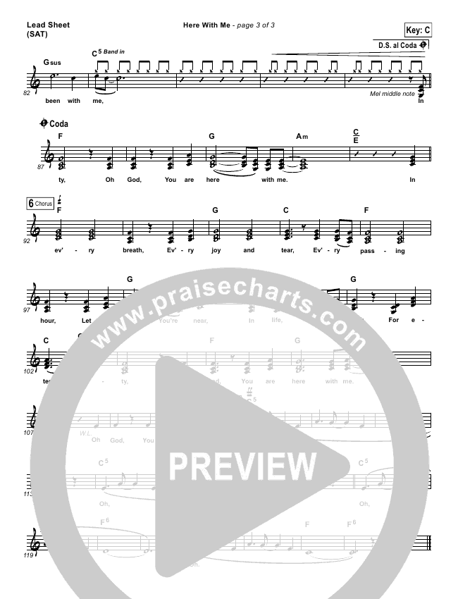 Download the sheet music for Here With Me by Tim Hughes, from the album Pocketful Of Faith. This song was arranged by Jeff Moore in the key of C, D.