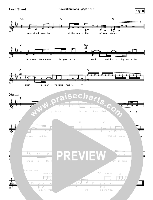 Download the sheet music for Revelation Song by LaMar Boschman, from the album So Amazing. This song was arranged by Shane Ohlson / David Parker in the key of D, Eb.