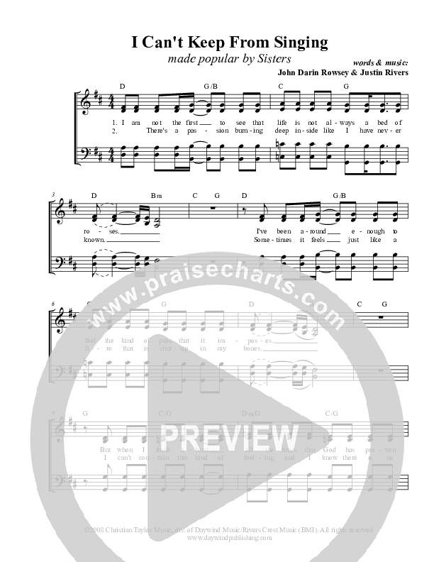 Download the sheet music for I Can't Keep From Singing by Sisters, from the album Songs From Daywind (Vol 2).