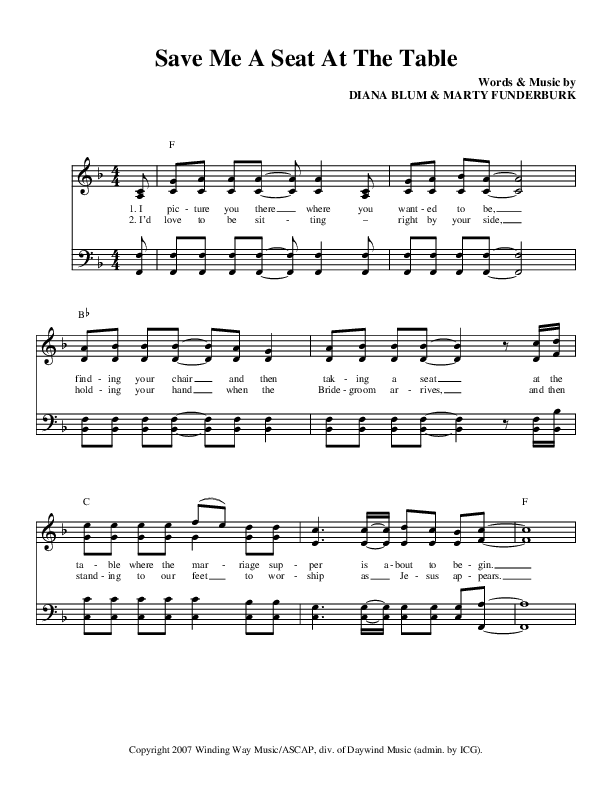 Download the sheet music for Save Me A Seat At The Table by Brian Free & Assurance, from the album Songs From Daywind (Vol 2).