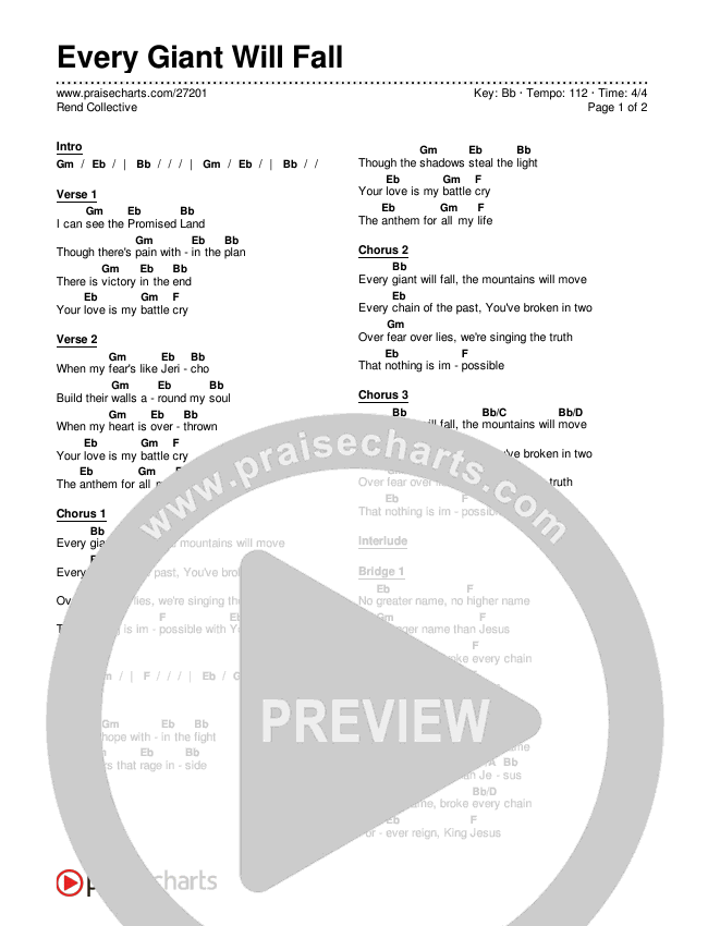 Every Giant Will Fall Chords PDF (Rend Collective)