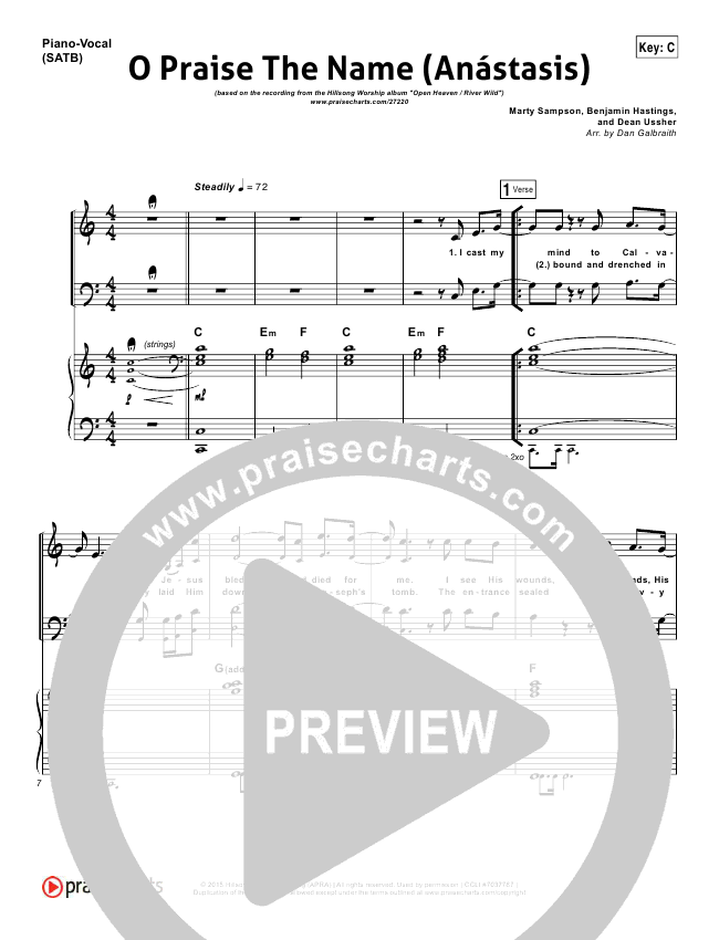O Praise The Name (Anastasis) Sheet Music PDF (Hillsong Worship)