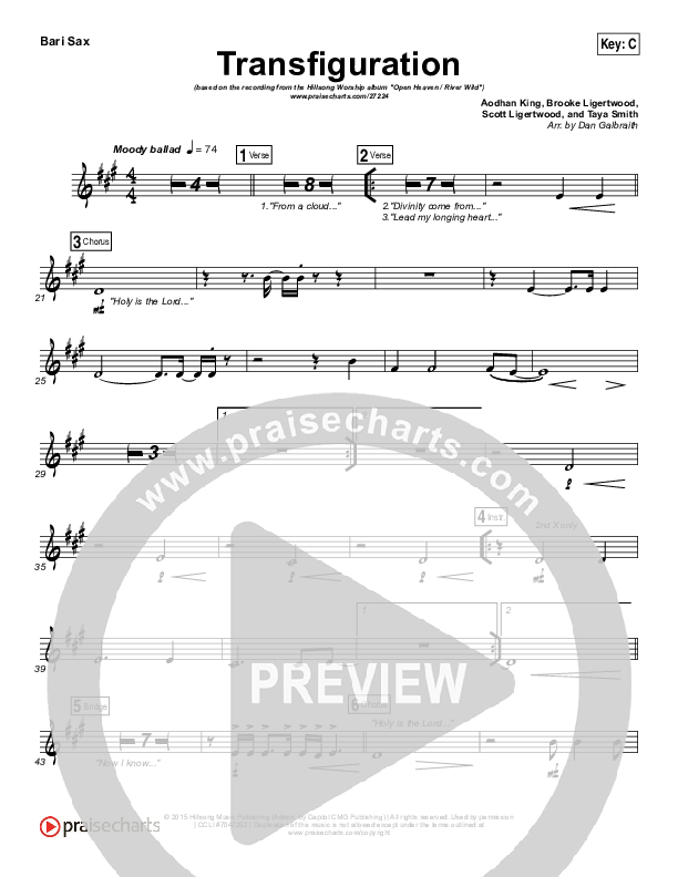 Transfiguration Bari Sax Sheet Music PDF (Hillsong Worship)