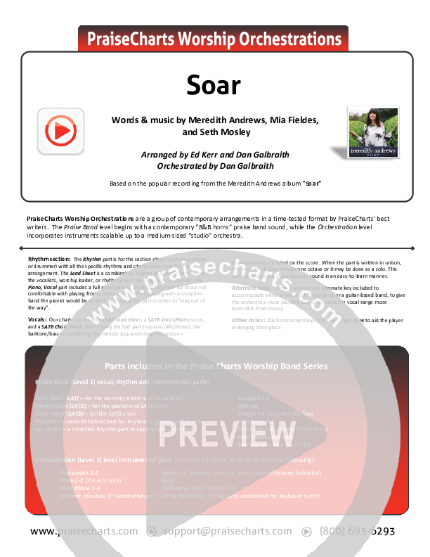 Download the Orchestration for Soar by Meredith Andrews, from the album Deeper. This song was arranged by Ed Kerr / Daniel Galbraith in the key of D, E, Eb, F.