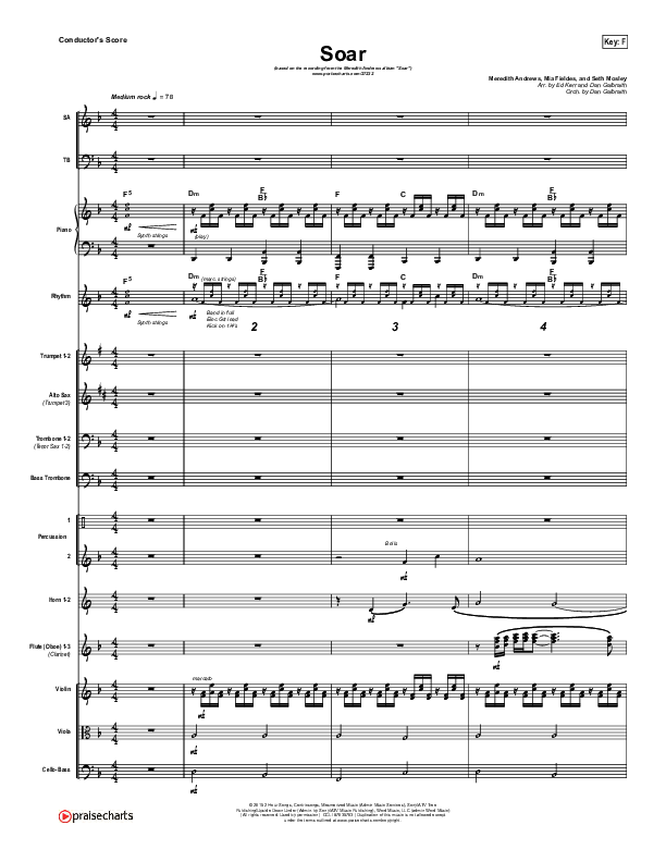 Download the Orchestration for Soar by Meredith Andrews, from the album Deeper. This song was arranged by Ed Kerr / Daniel Galbraith in the key of D, E, Eb, F.