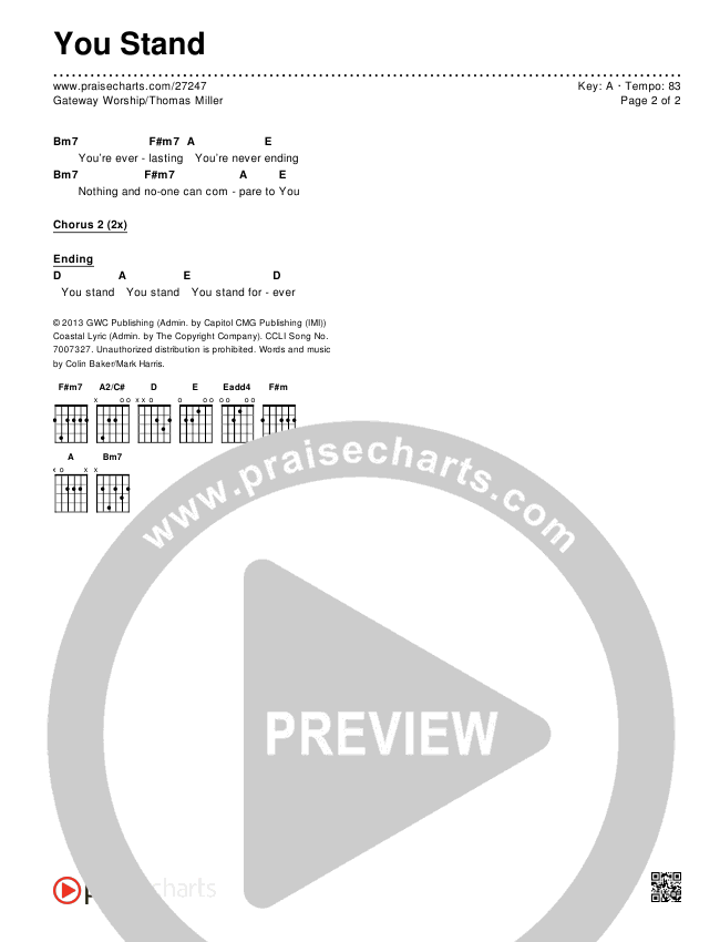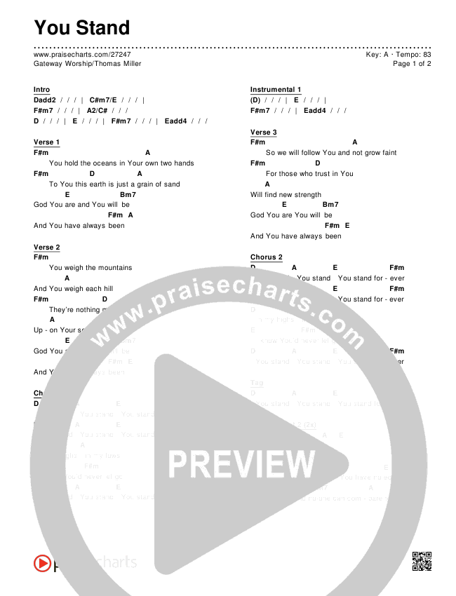 You Stand Chords PDF (Gateway Worship / Thomas Miller)