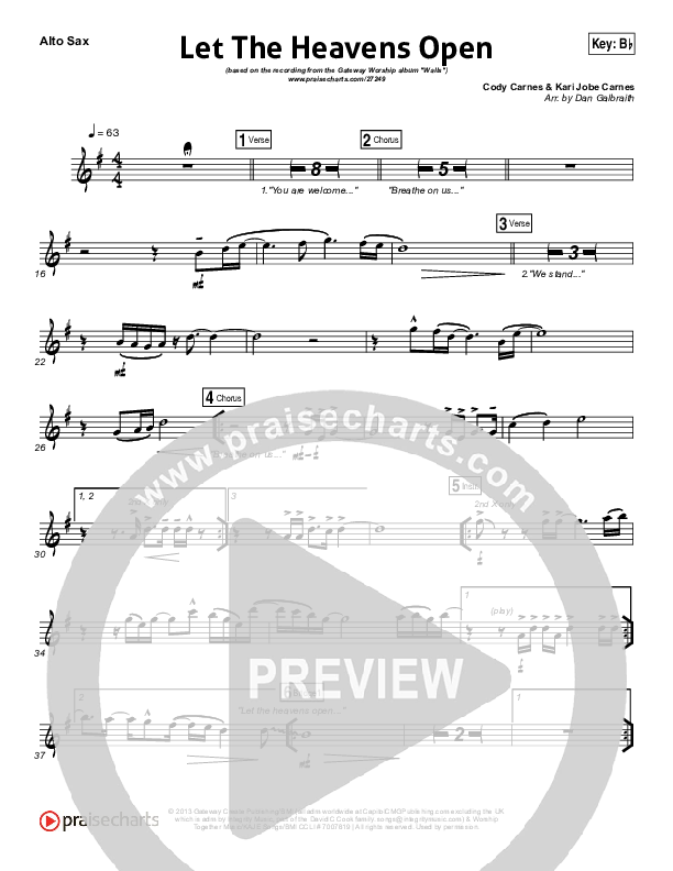 Download the AltoSax sheet music for Let The Heavens Open by Gateway Worship / Kari Jobe, from the album Walls. This song was arranged by Daniel Galbraith in the key of Bb, C.