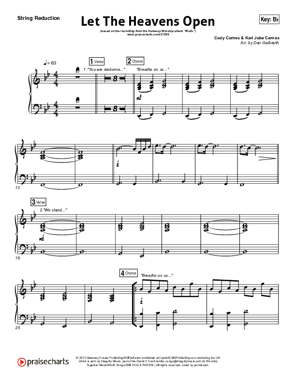 Download the Orchestration for Let The Heavens Open by Gateway Worship / Kari Jobe, from the album Walls. This song was arranged by Daniel Galbraith in the key of Bb, C.
