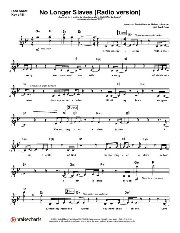 No Longer Slaves (Radio) Sheet Music PDF (Bethel Music / Jonathan David Helser)