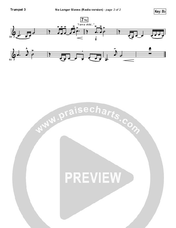 No Longer Slaves (Radio) Trumpet Sheet Music PDF (Bethel Music / Jonathan David Helser)
