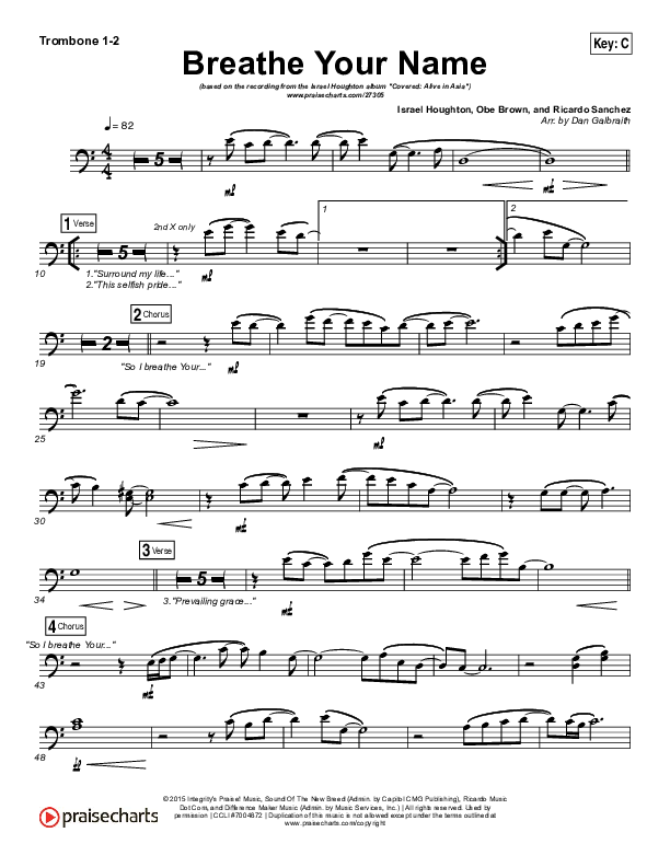 Breathe Your Name Trombone Sheet Music PDF (Israel Houghton)