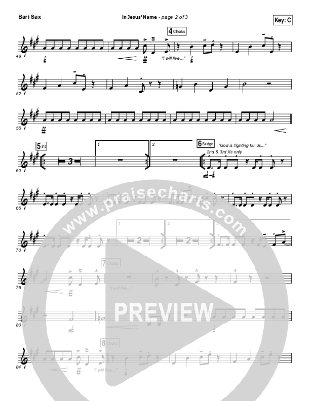 In Jesus' Name Bari Sax Sheet Music PDF (Israel Houghton)