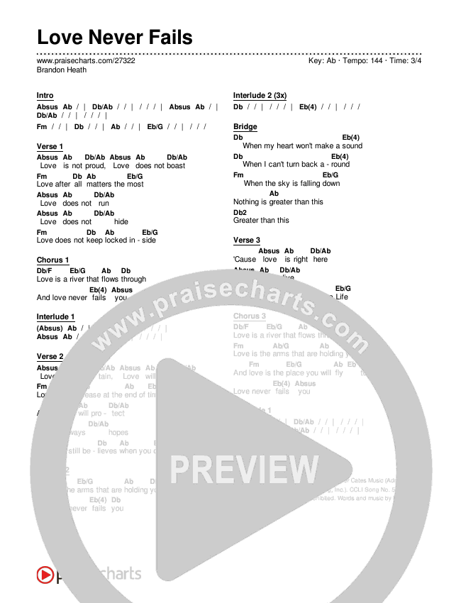 Love Never Fails Chords PDF (Brandon Heath)