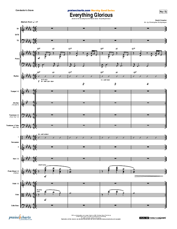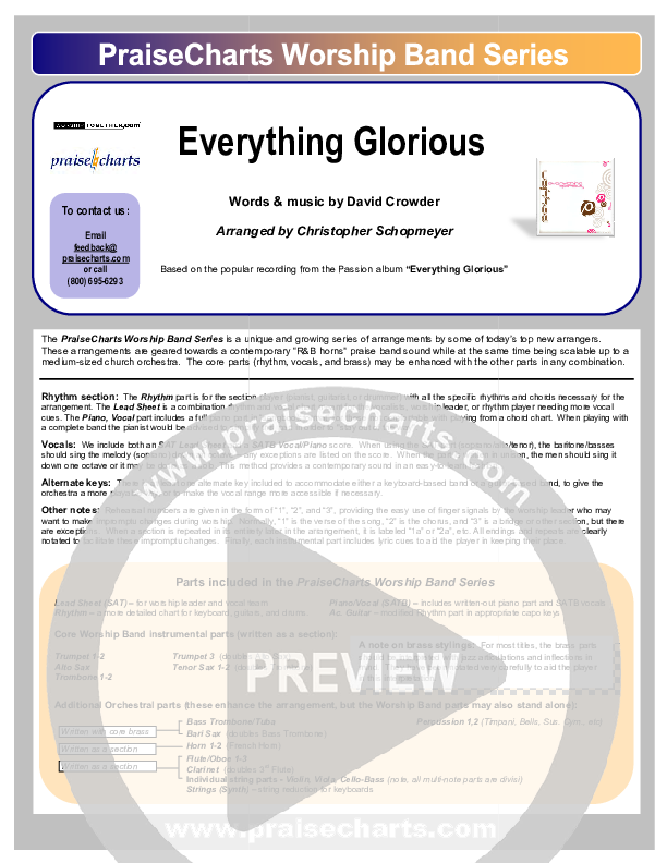 Download the Orchestration for Everything Glorious by David Crowder / Passion, from the album Passion: Everything Glorious. This song was arranged by Chris Schopmeyer in the key of Bb, Db.
