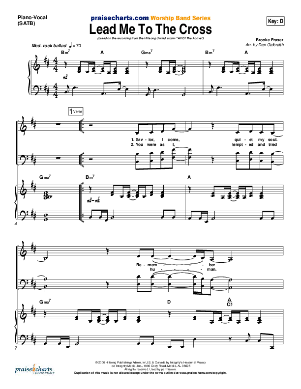 Download the sheet music for Lead Me To The Cross by Hillsong UNITED, from the album All Of The Above. This song was arranged by Daniel Galbraith in the key of D, Eb.