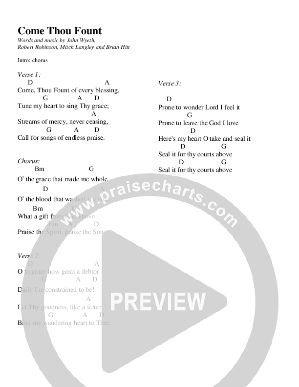 Come Thou Fount Chords PDF (Mitch Langley)