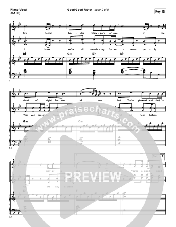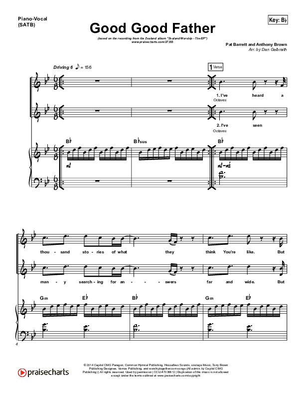 Download the sheet music for Good Good Father by Zealand, from the album Zealand Worship - The EP. This song was arranged by Daniel Galbraith in the key of A, Bb.