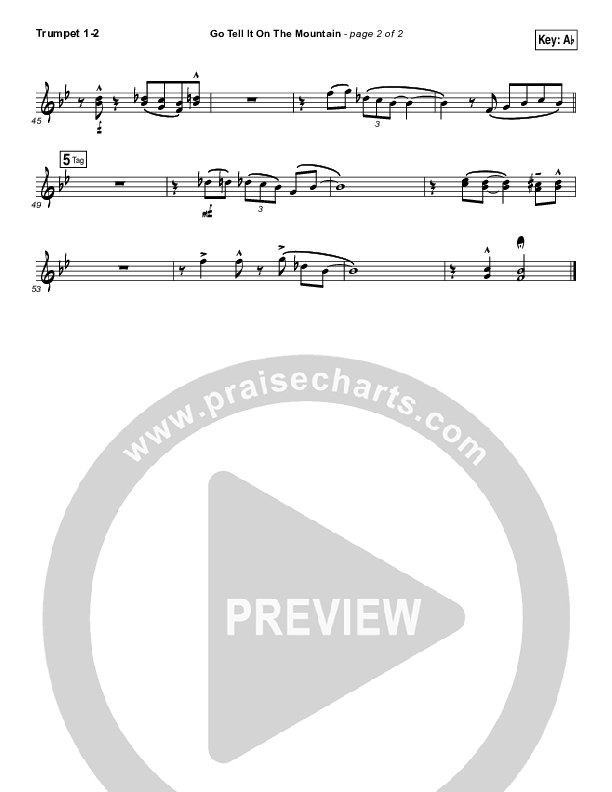 Download the trumpet sheet music for Go Tell It On The Mountain by MercyMe, from the album It's Christmas. This song was arranged by Dustin Loehrs / Daniel Galbraith in the key of Ab, G.