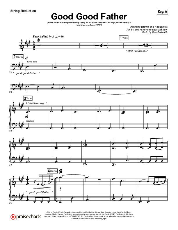 Download the Orchestration for Good Good Father by Big Daddy Weave, from the album Beautiful Offerings. This song was arranged by Erik Foster / Daniel Galbraith in the key of A, G.