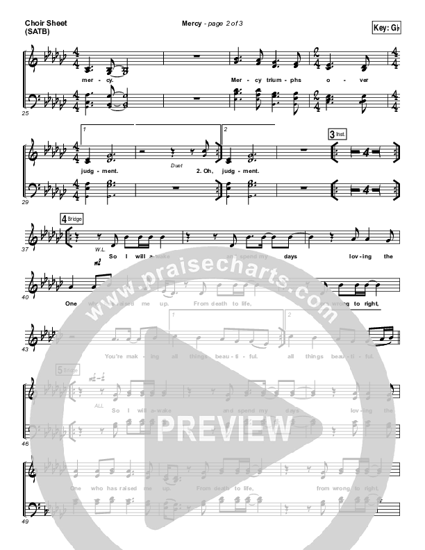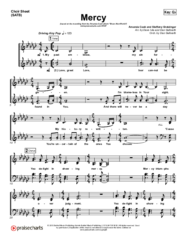 Download the Choir Sheet for Mercy by Amanda Lindsey Cook, from the album Brave New World. This song was arranged by Daniel Galbraith in the key of G, Gb.