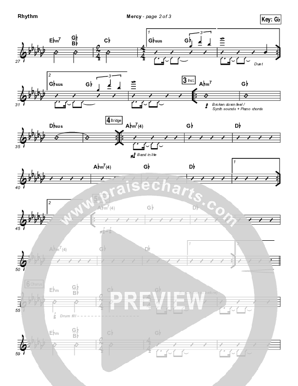 Download the Rhythm Chart for Mercy by Amanda Lindsey Cook, from the album Brave New World. This song was arranged by Daniel Galbraith in the key of G, Gb.