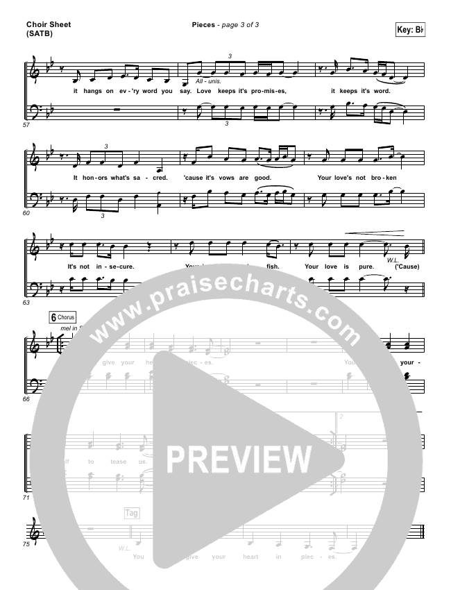 Download the Choir Sheet for Pieces by Amanda Lindsey Cook, from the album Brave New World. This song was arranged by Dave Iula / Jeff Moore in the key of Bb, C.
