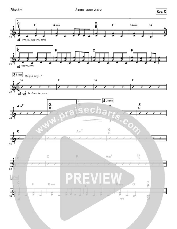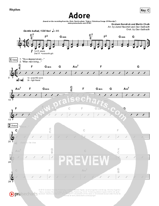 Download the Rhythm Chart for Adore by Chris Tomlin, from the album Adore: Christmas Songs Of Worship. This song was arranged by Jared Haschek / Daniel Galbraith in the key of A, B, Bb, C, D, Db, E, Eb, F.
