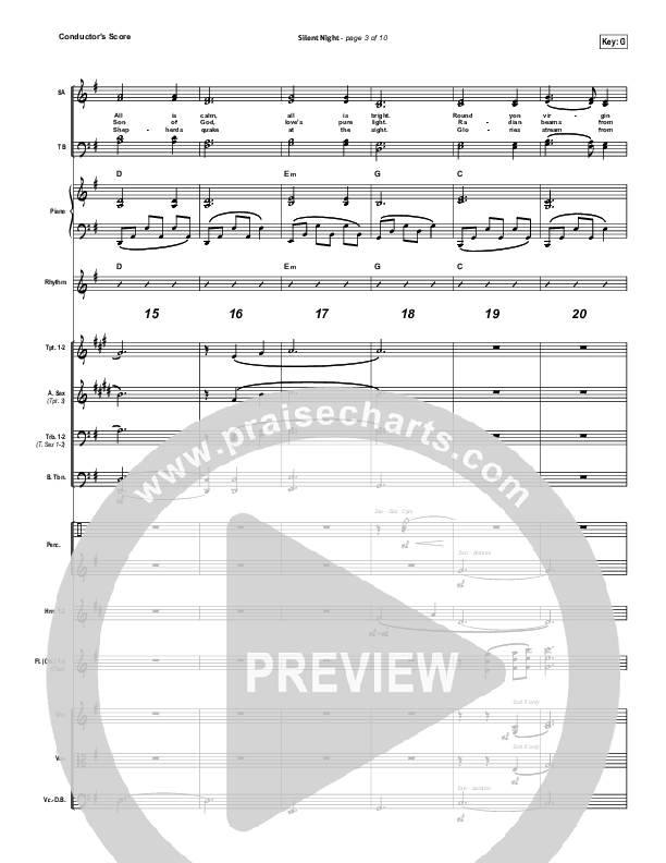 Download the Orchestration for Silent Night by Chris Tomlin / Kristyn Getty, from the album Adore: Christmas Songs Of Worship. This song was arranged by Daniel Galbraith / Jared Haschek in the key of A, Ab, B, Bb, C, G.