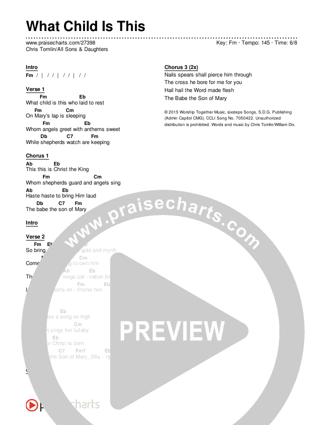 What Child Is This Chords PDF (Chris Tomlin / All Sons & Daughters)