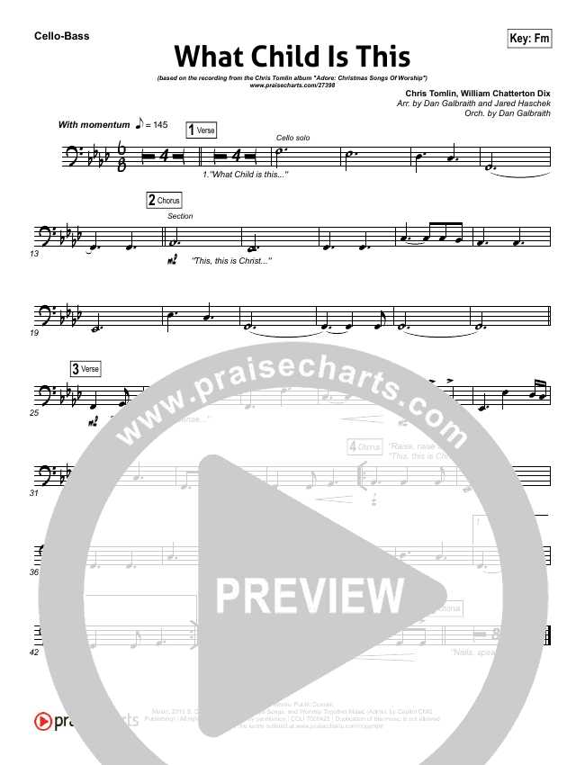 Download the Orchestration string parts for What Child Is This by Chris Tomlin / All Sons & Daughters, from the album Adore: Christmas Songs Of Worship. This song was arranged by Daniel Galbraith / Jared Haschek in the key of C#m, Cm.