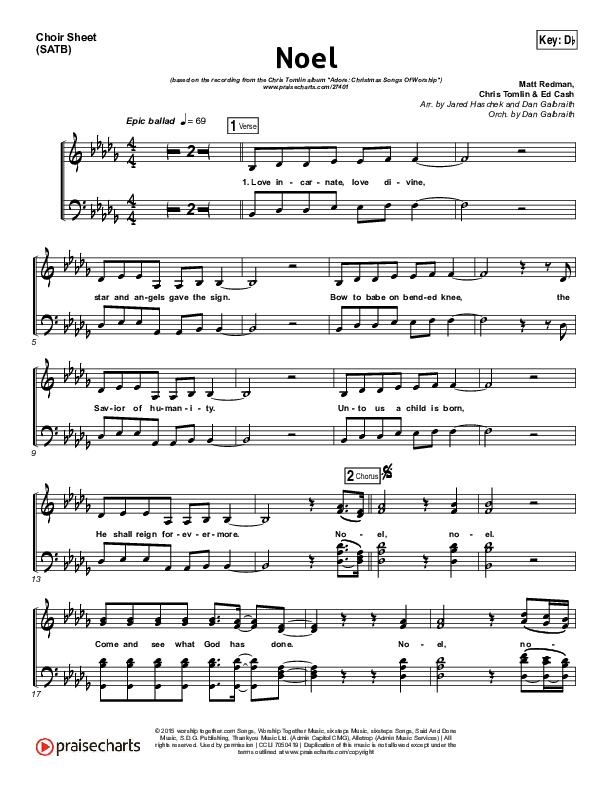 Download the Choir Sheet for Noel by Lauren Daigle, from the album Adore: Christmas Songs Of Worship. This song was arranged by Daniel Galbraith / Jared Haschek in the key of Bb, C, D, Db, E, Eb, F, G.