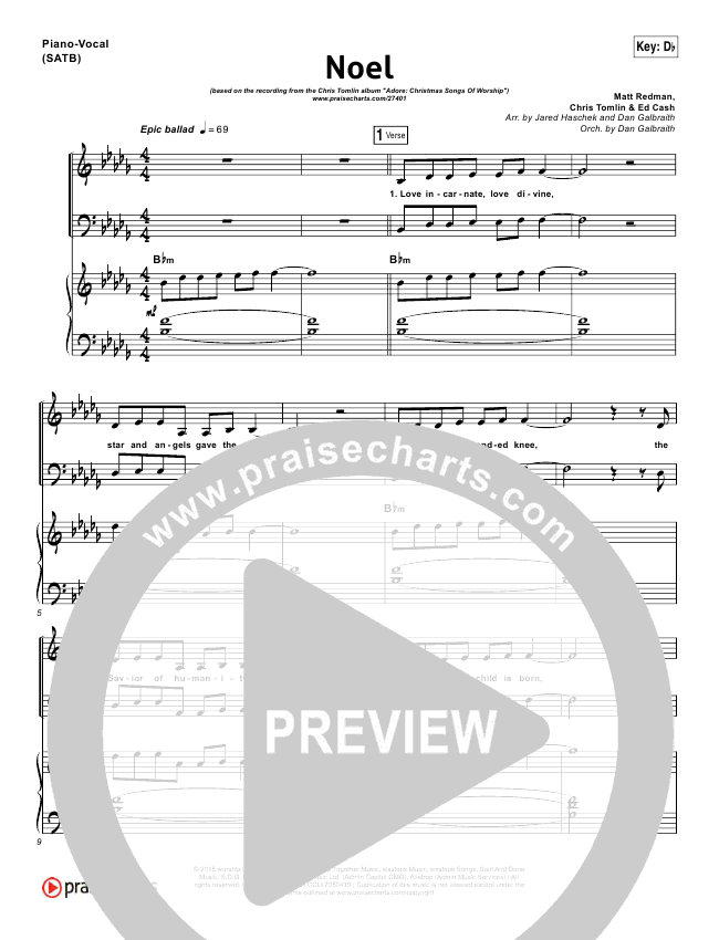 Download the sheet music for Noel by Lauren Daigle, from the album Adore: Christmas Songs Of Worship. This song was arranged by Daniel Galbraith / Jared Haschek in the key of Bb, C, D, Db, E, Eb, F, G.