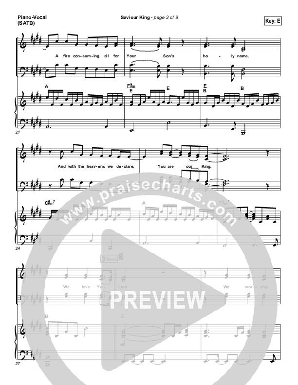 Download the sheet music for Saviour King by Hillsong Worship, from the album Saviour King. This song was arranged by Daniel Galbraith in the key of E, F.