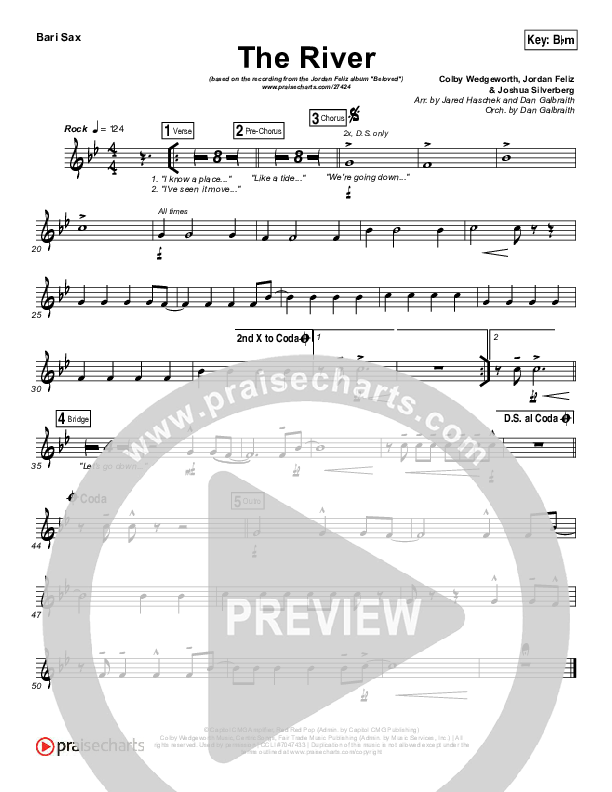 The River Bari Sax Sheet Music PDF (Jordan Feliz)