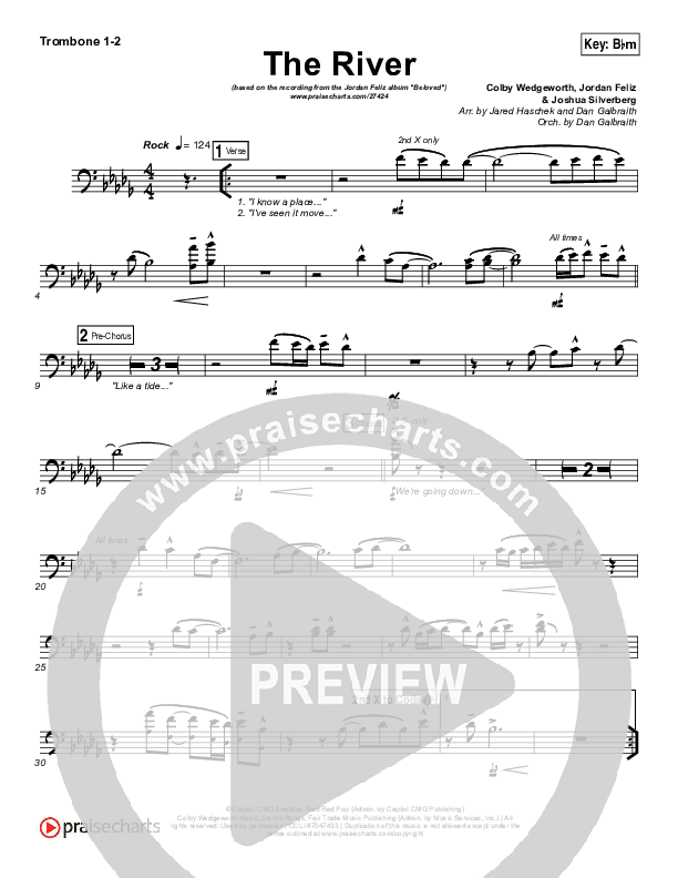 Download the Trombone 1,2 sheet music for The River by Jordan Feliz, from the album The River. This song was arranged by Jared Haschek / Daniel Galbraith in the key of Am, Bbm, Bm, Cm, Gm.