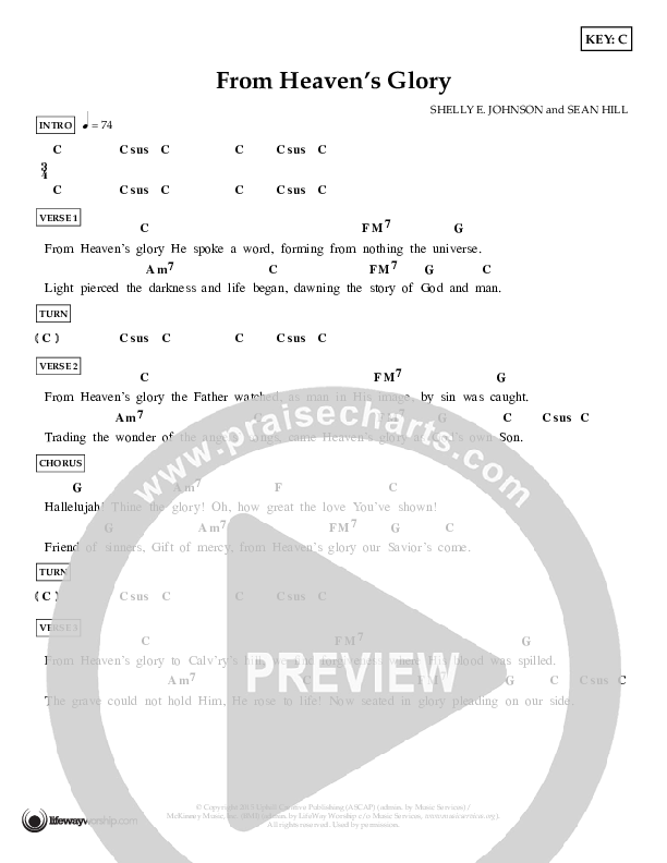 Download the PDF Chord Charts for From Heaven's Glory by Shelly E. Johnson, from the album Measureless. This song was arranged by Lifeway Worship in the key of Bb, C, D, G.