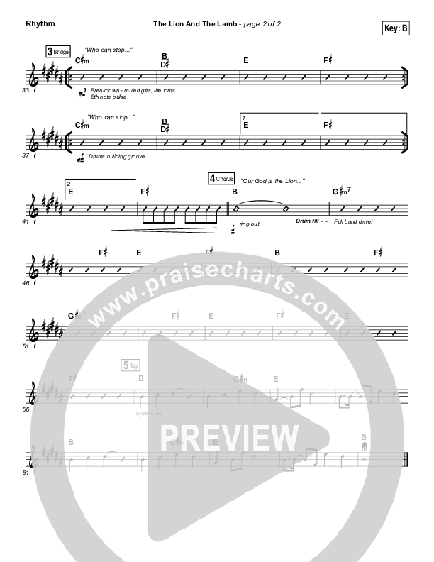 Download the Rhythm Chart for The Lion And The Lamb by Big Daddy Weave, from the album Beautiful Offerings. This song was arranged by Dustin Loehrs / Daniel Galbraith in the key of A, Ab, B, Bb, G.