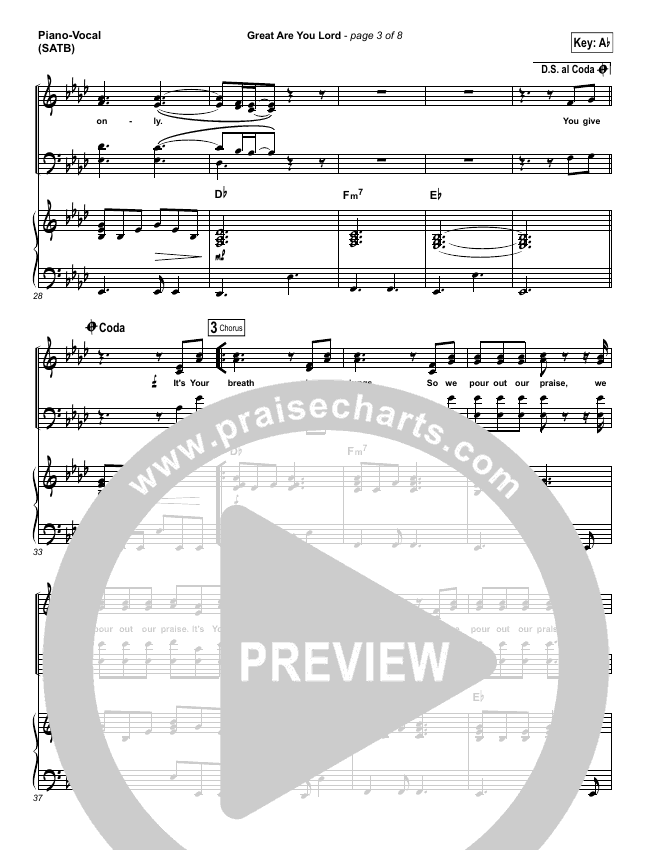 Download the sheet music for Great Are You Lord by Casting Crowns, from the album A Live Worship Experience. This song was arranged by Dave Iula / Daniel Galbraith in the key of Ab, G.