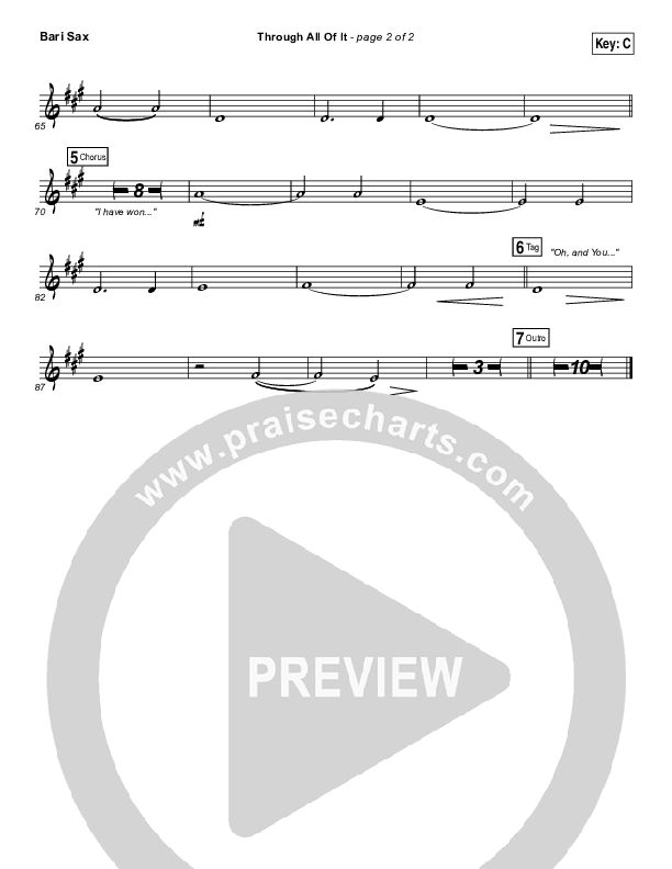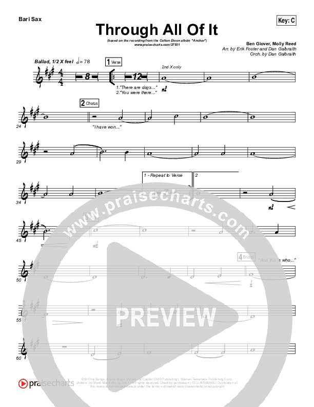 Download the Bari Sax sheet music for Through All Of It by Colton Dixon, from the album Anchor. This song was arranged by Erik Foster / Daniel Galbraith in the key of Bb, C.