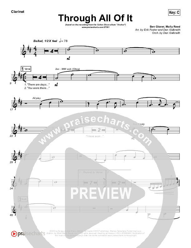 Download the Orchestration for Through All Of It by Colton Dixon, from the album Anchor. This song was arranged by Erik Foster / Daniel Galbraith in the key of Bb, C.