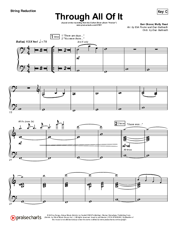 Download the Orchestration for Through All Of It by Colton Dixon, from the album Anchor. This song was arranged by Erik Foster / Daniel Galbraith in the key of Bb, C.