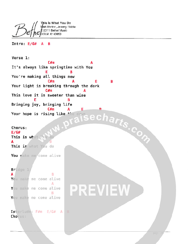 Download the PDF Chord Charts for This Is What You Do by Bethel Kids, from the album Come Alive. This song was arranged by Bethel Music in the key of .